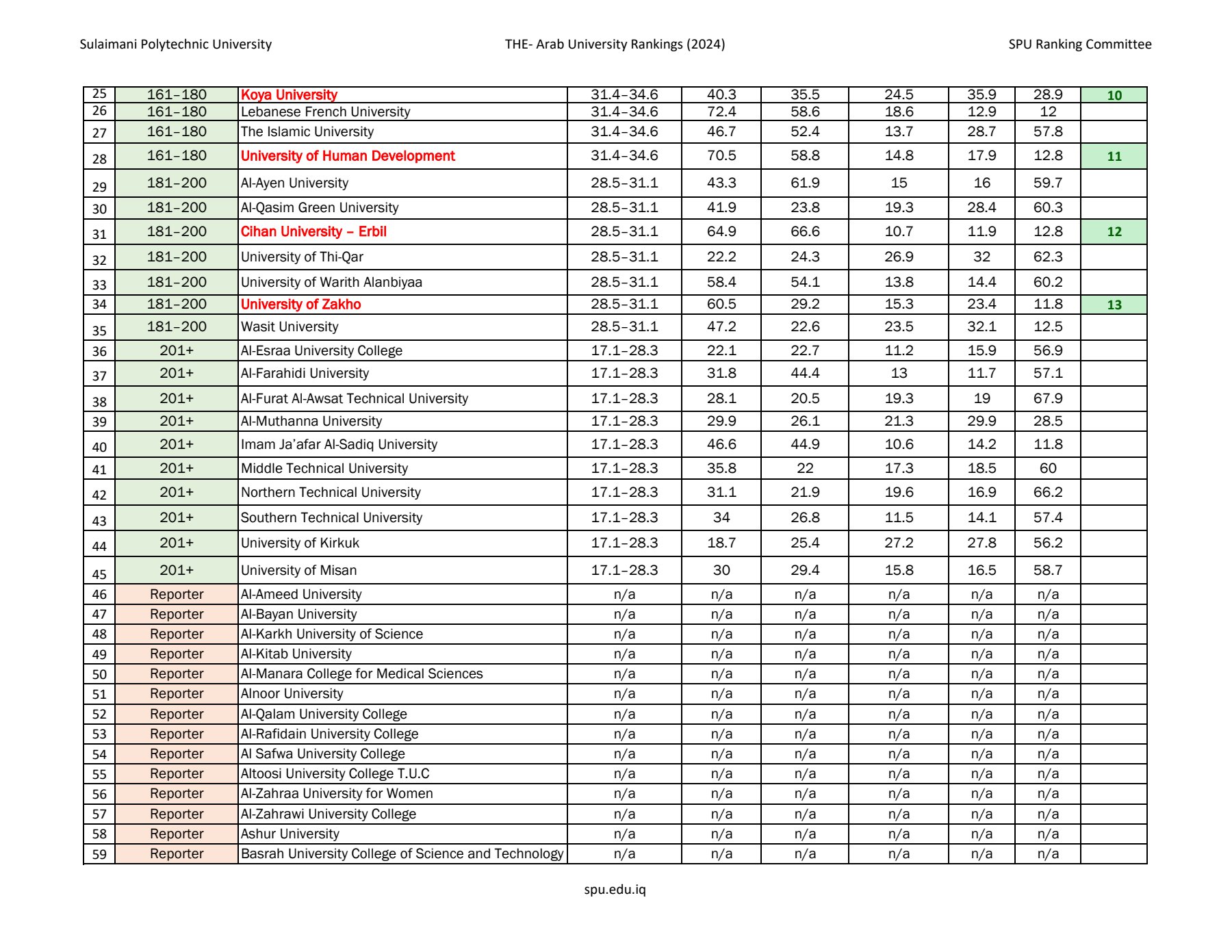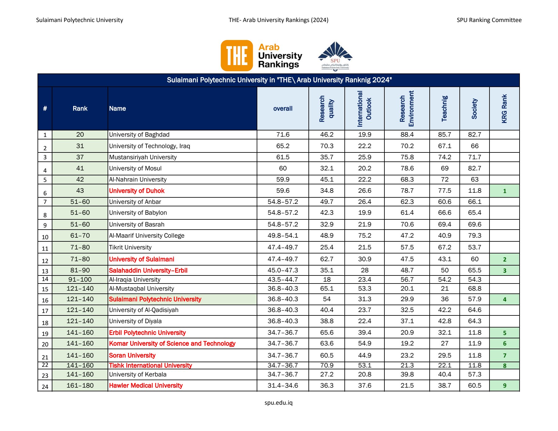 - Ranked 1st among polytechnic universities in the Kurdistan Region