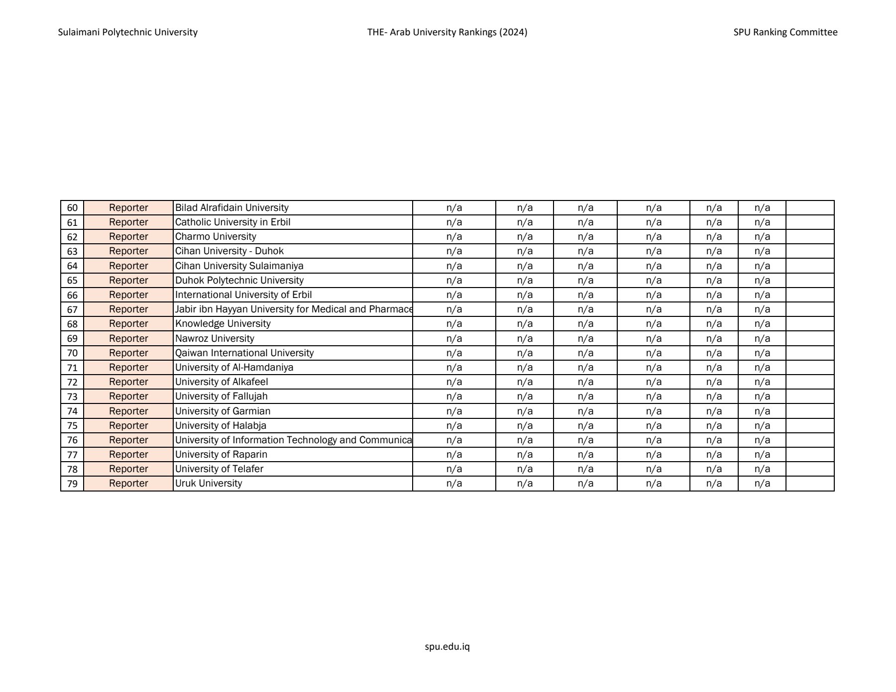 Sulaimani Polytechnic University has been Ranked by Times Higher Education for the First Time