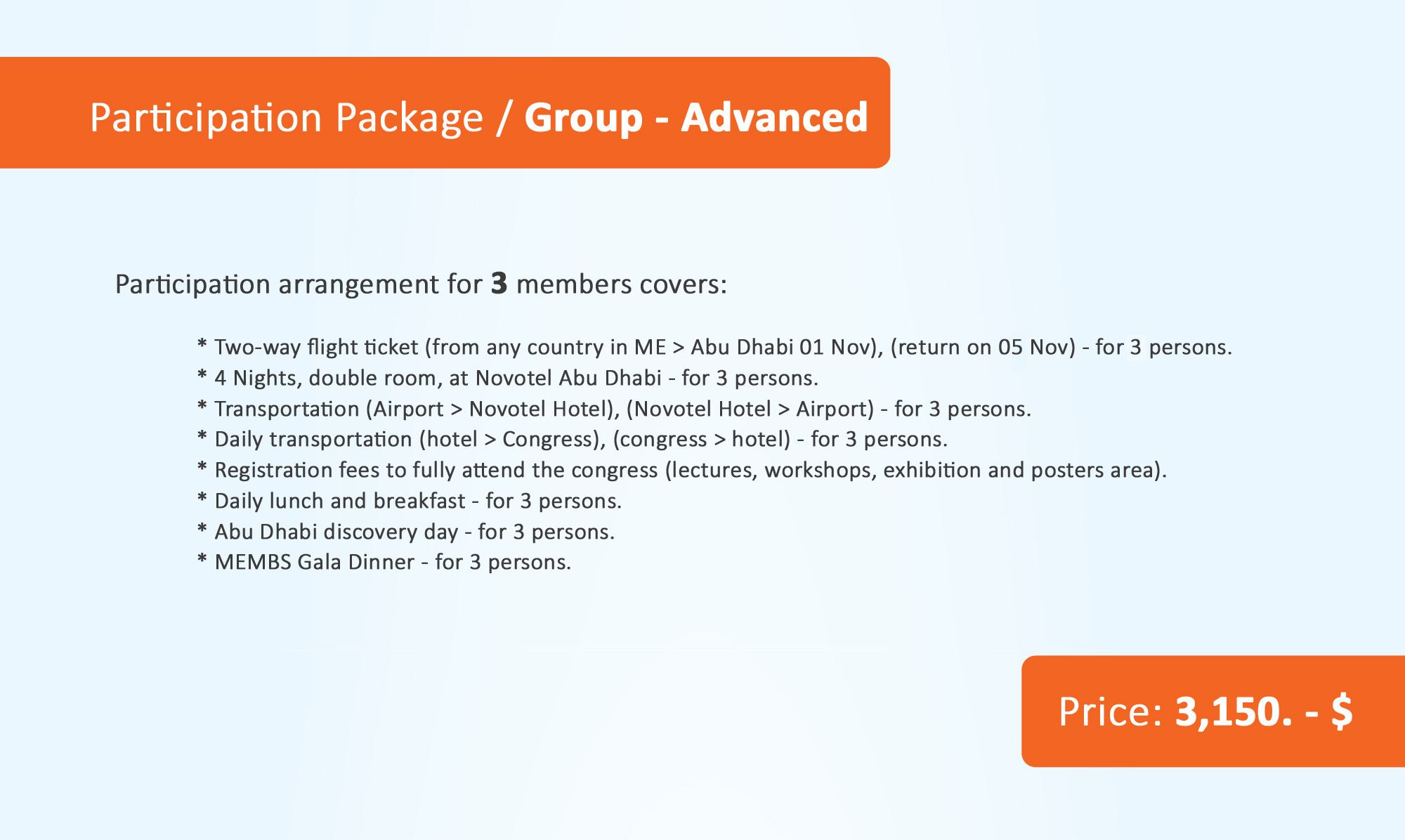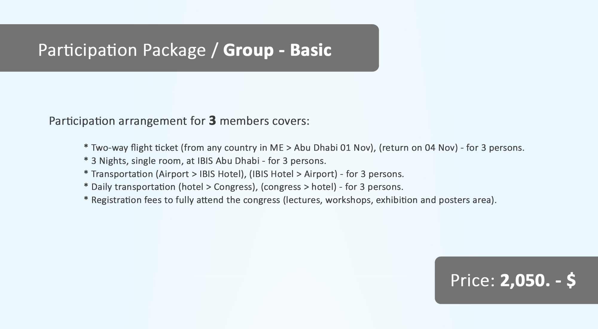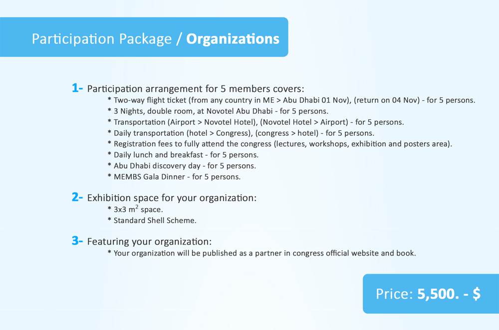 The attached customized three participation packages will guarantee the maximum comfort ability and benefits to your members, along with the best featuring of your organization in minimum cost (Kindly note that those packages are available for very limited time. Different customization is also discussable).