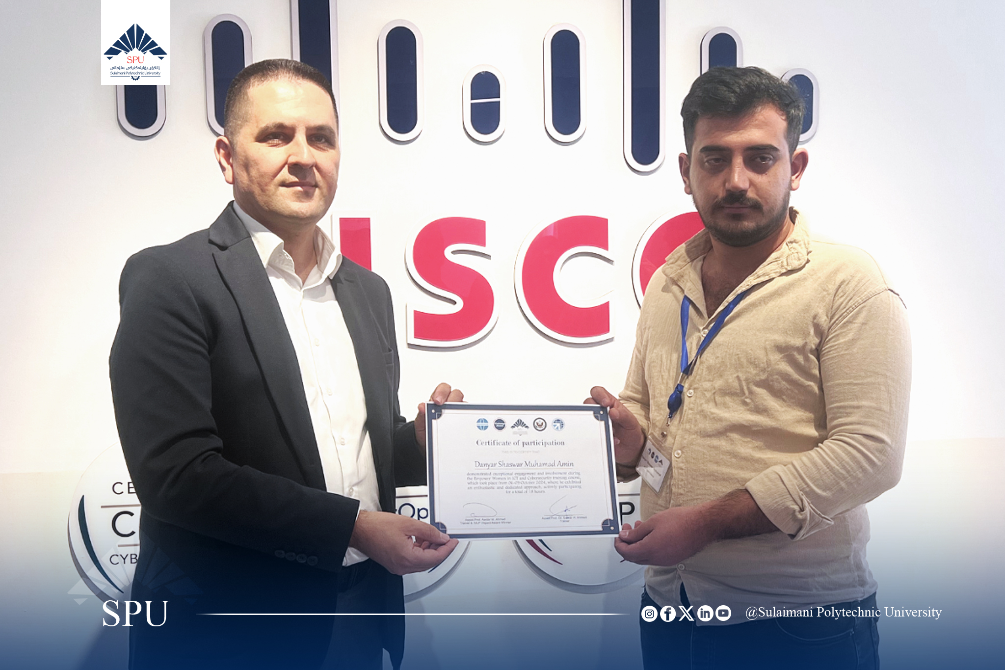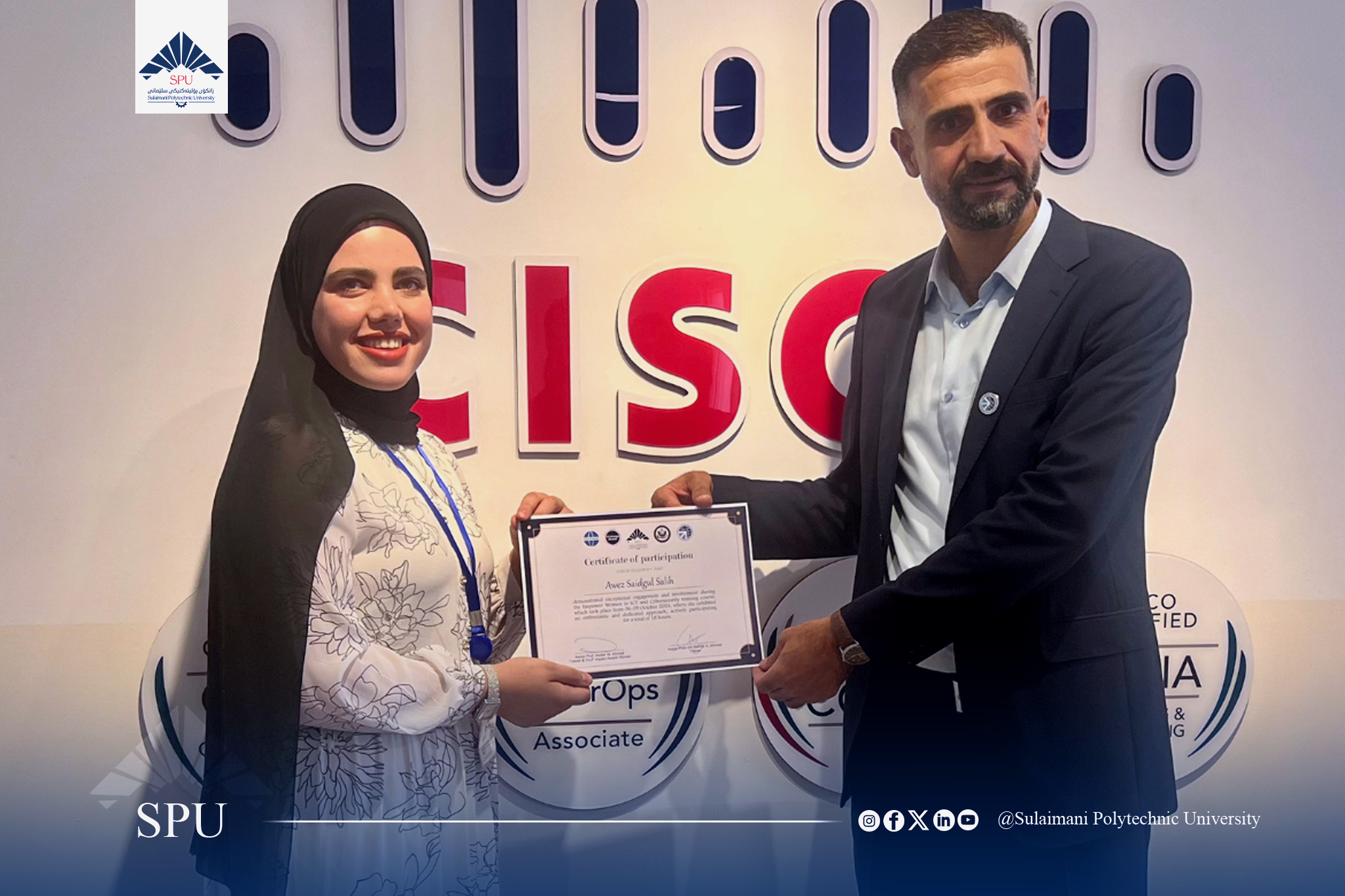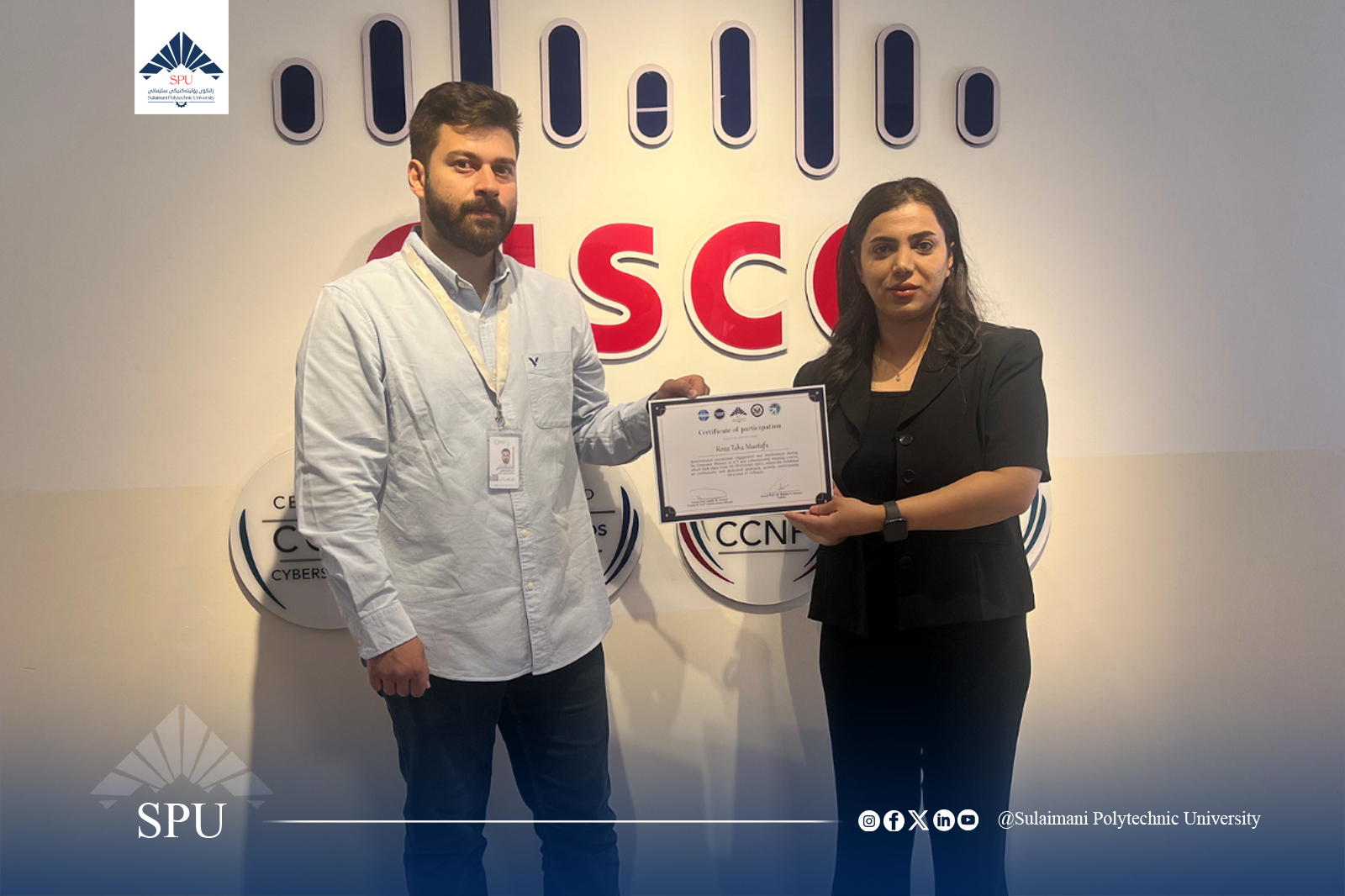 Academy (Cisco)- Sulaimani Polytechnic University Chawarchra Campus in Technical College of Engineering, in collaboration with Meridian International Center and the Office of Educational and Cultural Affairs of the US State Department conducted a training course for 30 graduate students from universities and colleges in Sulaimani such as International Tishk International University, Jihan University, Sulaimani Polytechnic University, Kurdistan Technical Institute and National Institute.