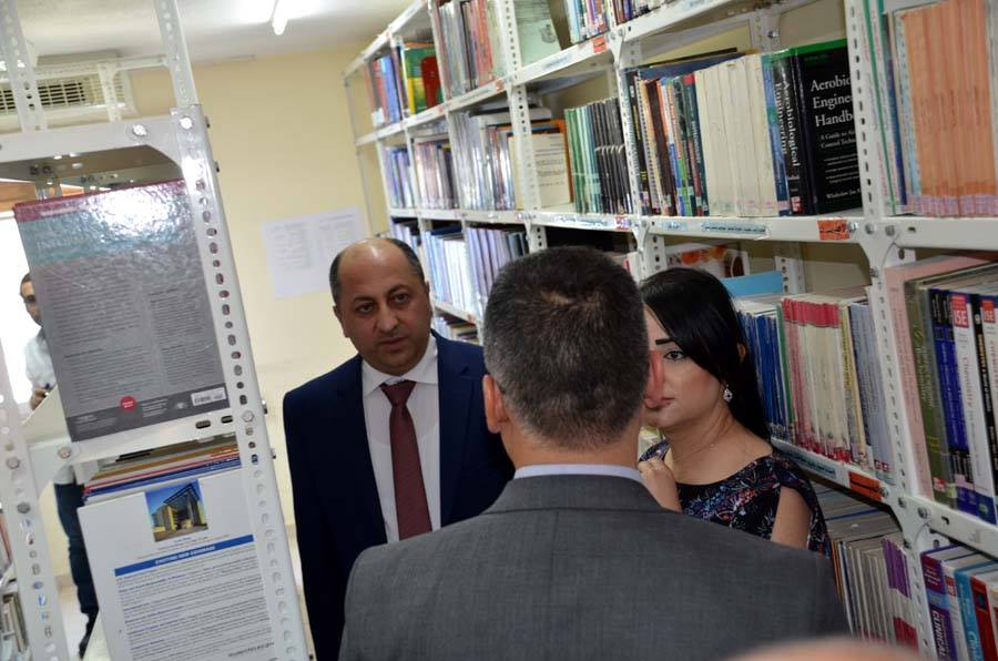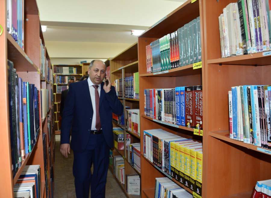 On the occasion of the founding of the university, assist Prof. Dr.Alan Faraidoon, President of Sulaimani Polytechnic University accompanied by vice president for students affairs assist Prof.Dr.Dana Ahmed presented a book exhibition at the Technical College, then he visited the university cafeteria and met number of students, and on his visit to the college library on the same day he pledged to provide all possible facilities to raise the level of education and the scientific and cultural level of students.