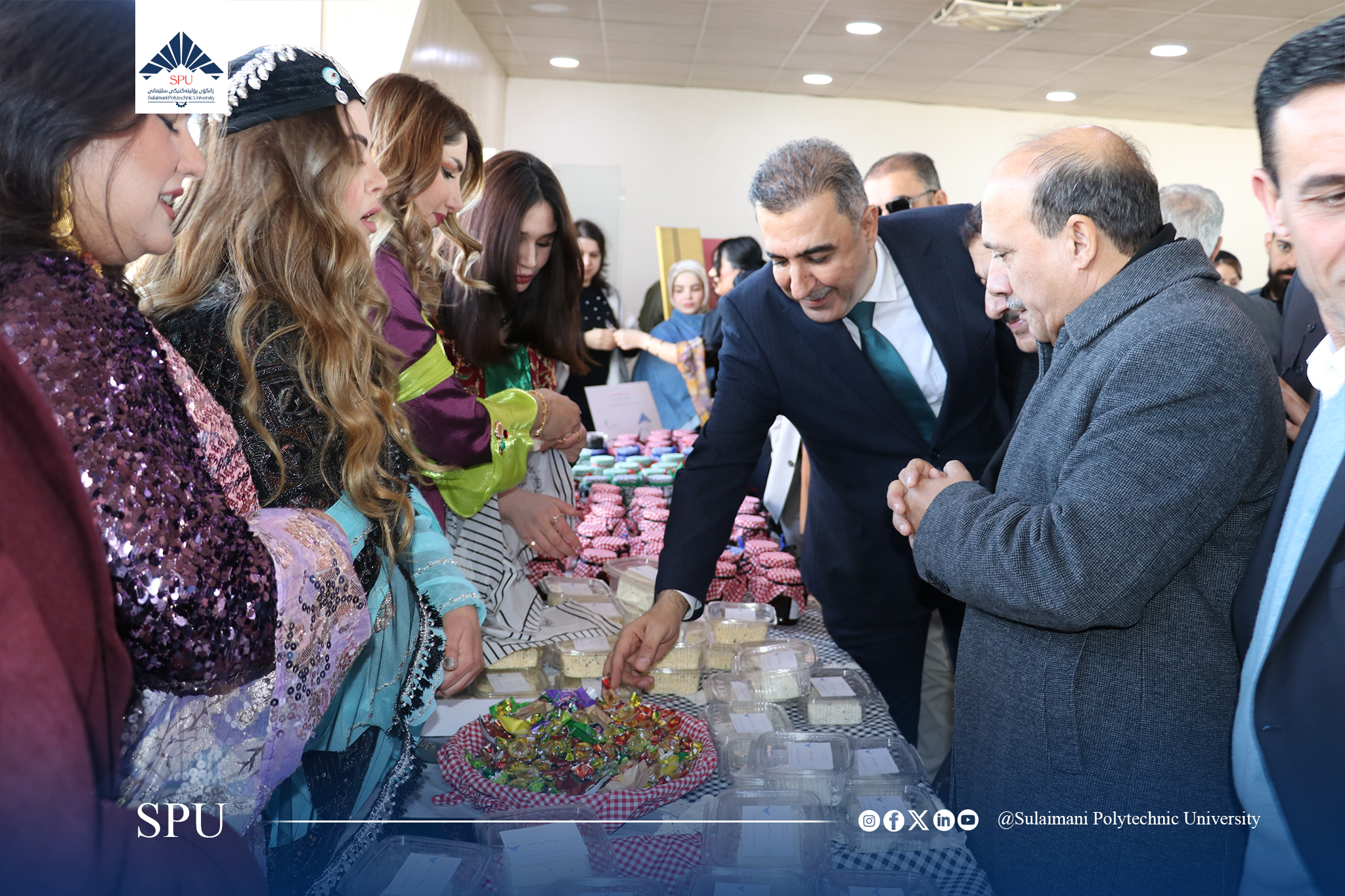 Supervised and attended by Prof. Dr. Hoshyar Abdullah Aziz, President of Sulaimani Polytechnic University, along with several deans of colleges and institutes and government officials, opened and exhibition on Tuesday, December 21, 2025, at Bakrajo Technical Institute. The exhibition was held under the slogan “Talents and Abilities are Strengthened in the Shadow of Science” and showcased the products and efforts of students who applied their talents and the lessons they have studied.